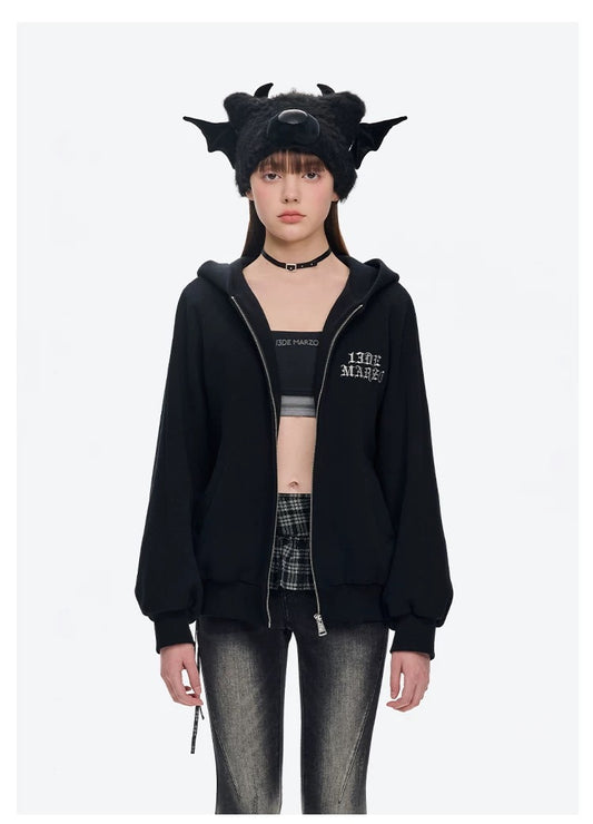 13DE MARZO Angel Devil Bear Zipped Hoodie Black
