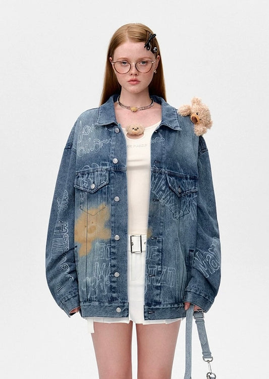 13DE MARZO Slogan Graffiti Denim Jacket Blue
