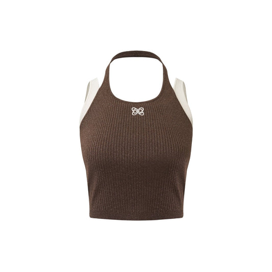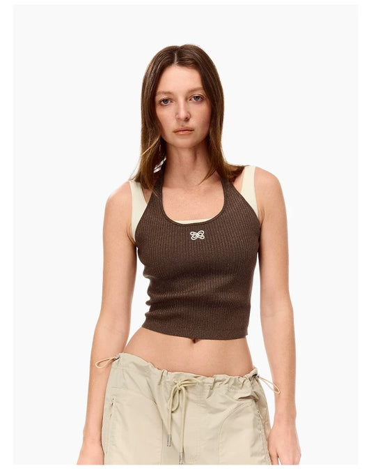 Ann Andelman Brown Faux Two-piece Knit Top With Patchwork Shirt