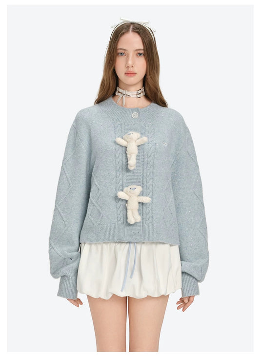 13DE MARZO Rebel Clown Bear Hollow Sweater White