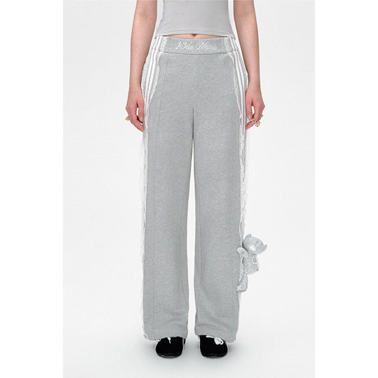 13DE MARZO Bear Stripe Lacy Pants Grey