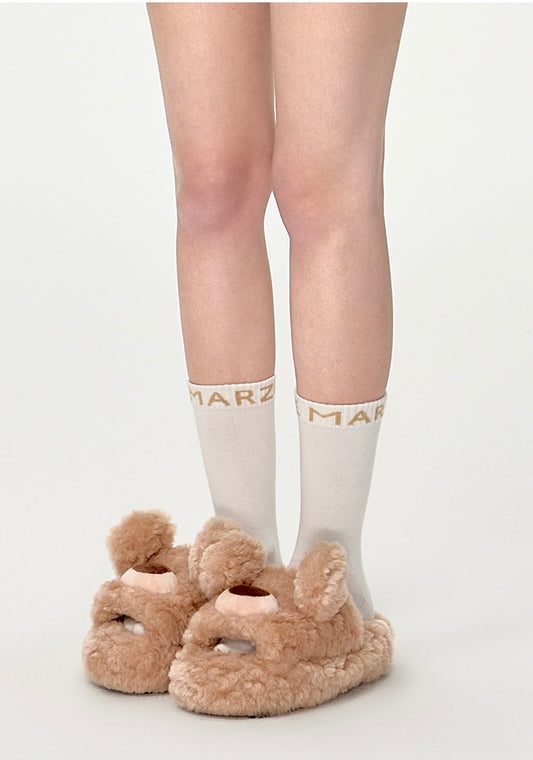 13DE MARZO Logo Furry Plush Slipper Primrose Pink