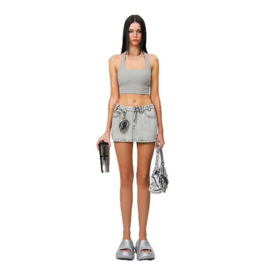 SMFK Compass Wild Tarpan Denim Mini Skirt Gray