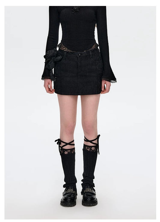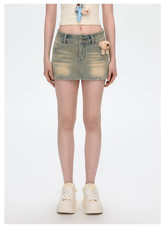 13DE MARZO Bear Lacy Denim Skirt Grey