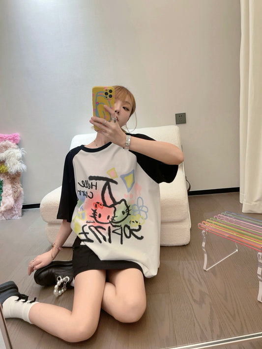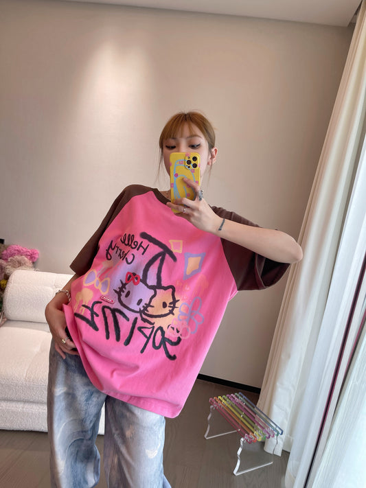 Sofitte Hello Kitty Graffiti Color Blocked Tee Pink
