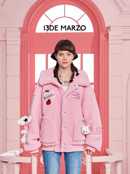 13DE MARZO Hello Kitty Bear Fleece Coat Rose Shadow