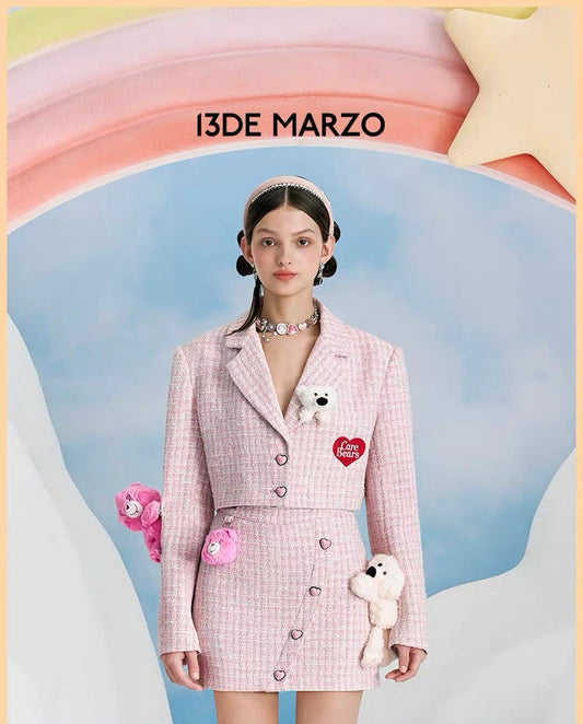 13DE MARZO x CARE BEARS Tweed Short Suit Promise Pink