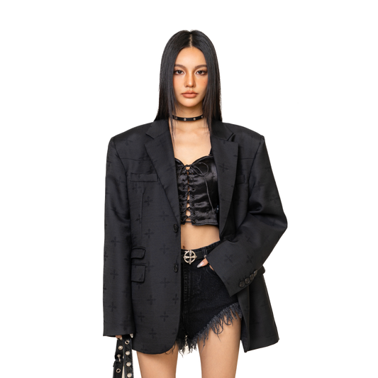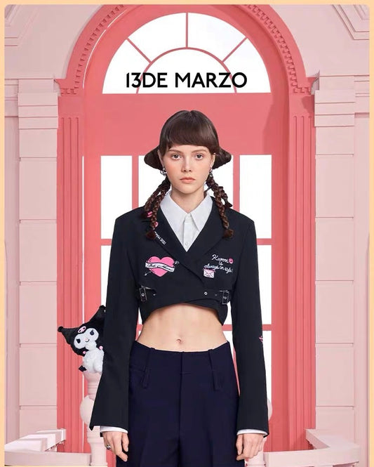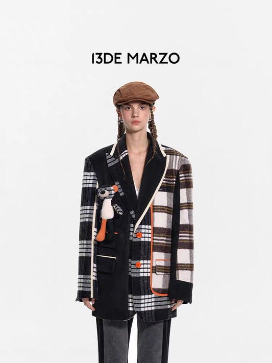 13DE MARZO Retro Bear Tweed Patch Suit Multicolor