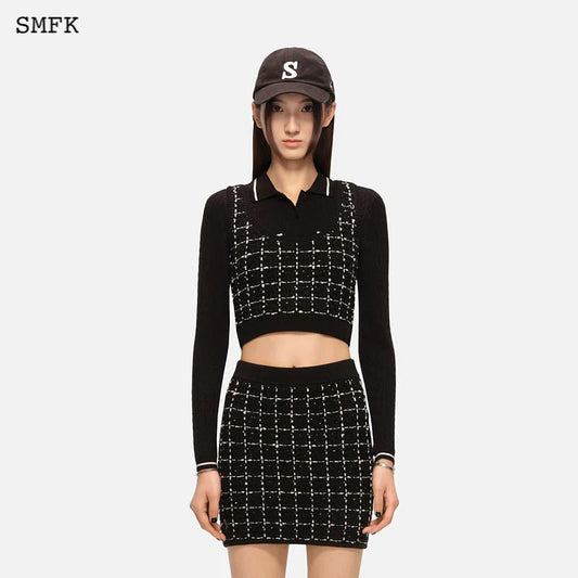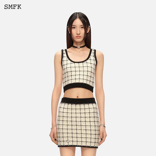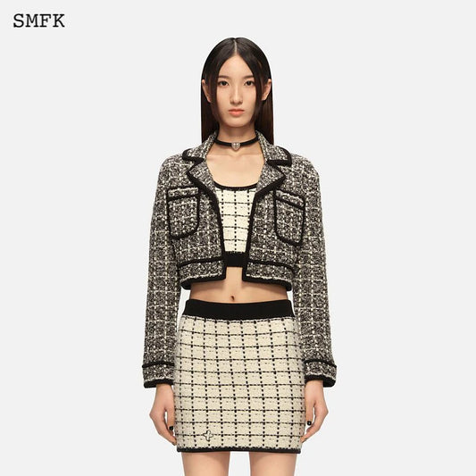 Concise-White Plaid Patchwork Roundneck Wool Suit Dark Grey