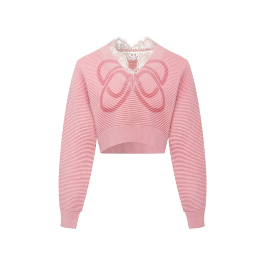 Ann Andelman Pink Printed Hooded V-neck Sweater