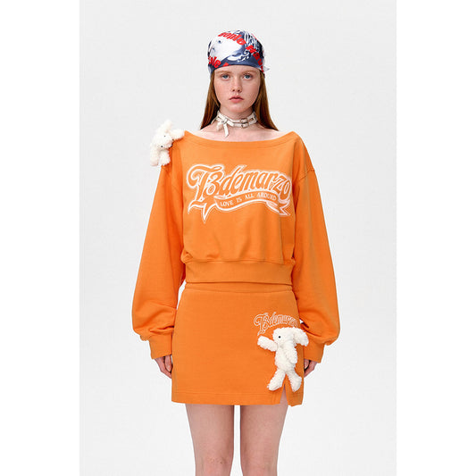 13DE MARZO Dooozoo Off-Shoulder Short Sweater Orange
