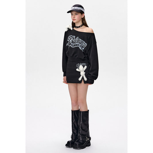 13DE MARZO Dooozoo Off-Shoulder Short Sweater Black