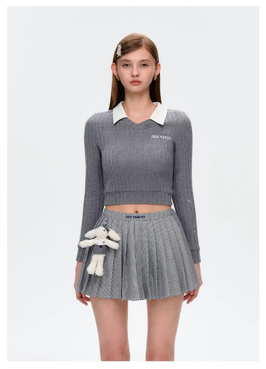 13DE MARZO Dooozoo Off-Shoulder Short Sweater Gray