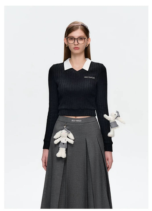 ✦FX✦ Retro Cute Kitten Lapel Knit Stripped Sweater