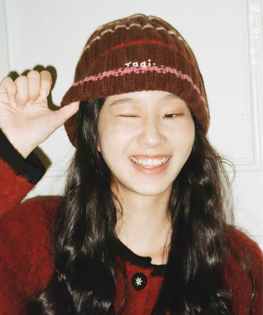 Tagi Colored Striped Wool Beanie Berry Chocolate