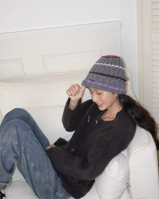 Tagi Colored Striped Wool Beanie Taro Sesame