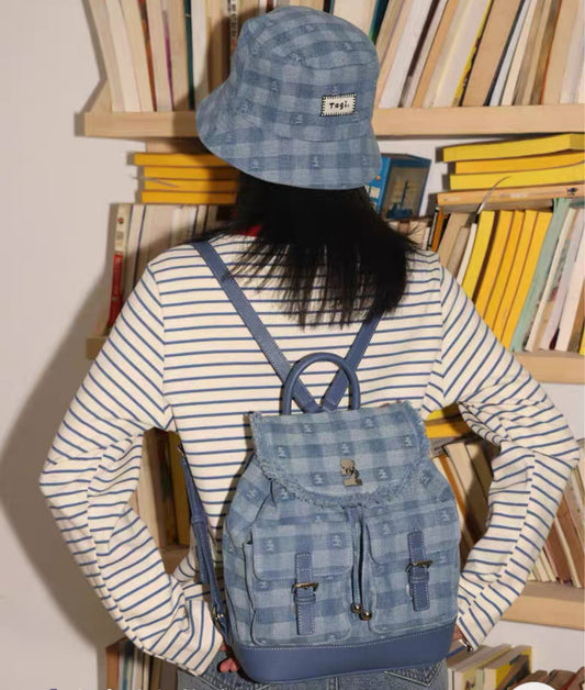 Tagi Imagine Denim Check Pattern Backpack