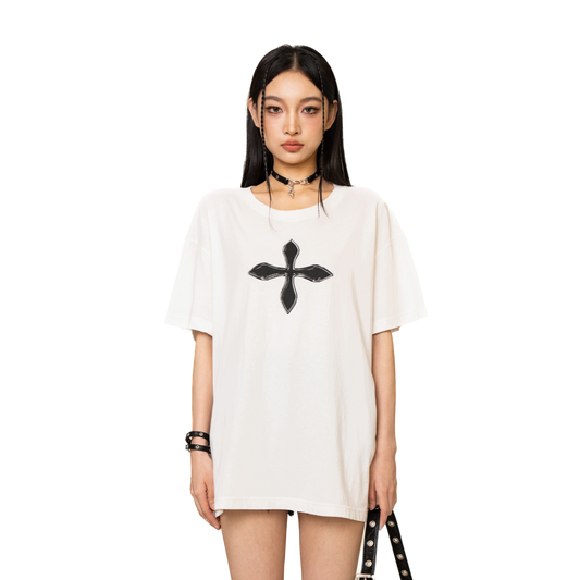 13DE MARZO Angel Devil Hollow Out T-Shirt White