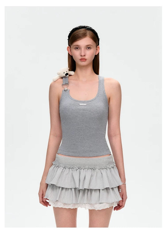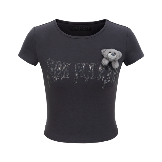 13DE MARZO x RONRON Bear Ribbon Slim Top Black