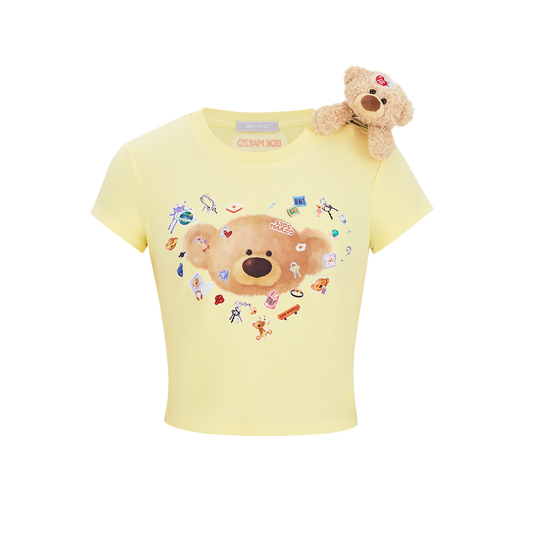 13DE MARZO x RONRON Bear Ribbon Slim Top Beige