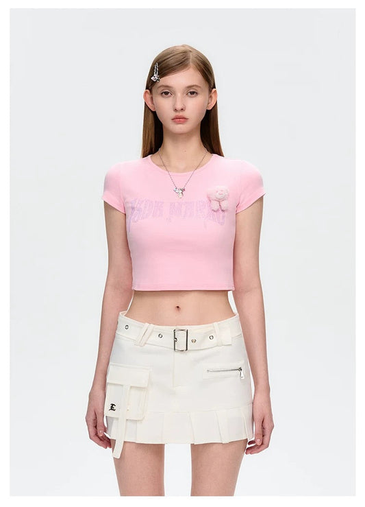 13DE MARZO Rhinestone Cropped Top Pink
