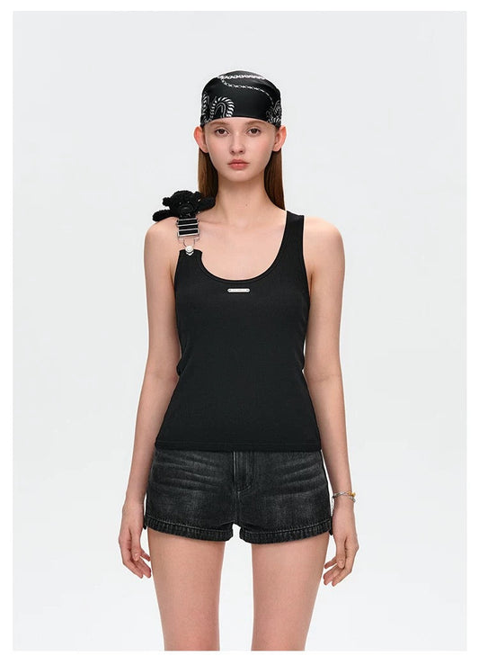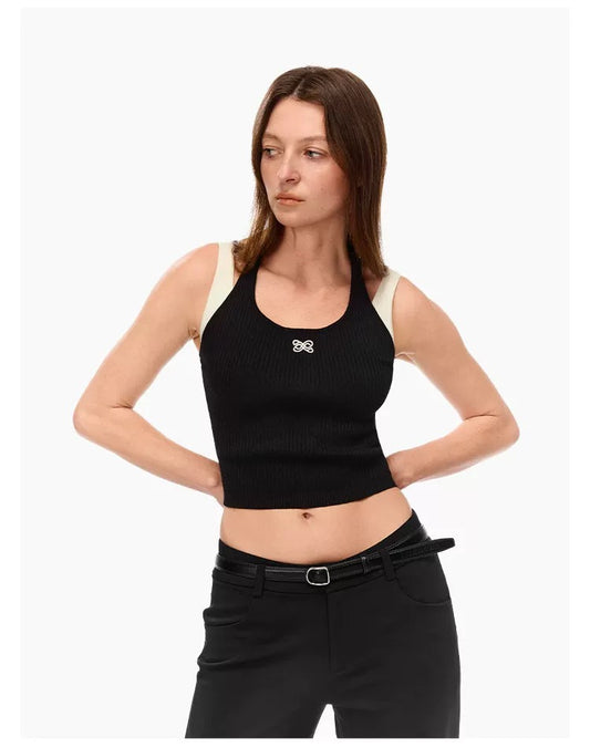 13DE MARZO Strap Knit Slim-Fit Vest Black
