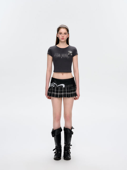 13DE MARZO Rhinestone Cropped Top Dark Grey
