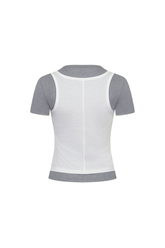 Ann Andelman White Fake Two Piece Knitted Top