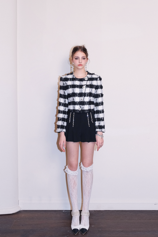 DIANA VEVINA Drill Button Tweed Check Jacket