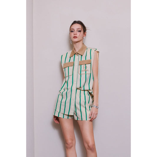 DIANA VEVINA Color Blocked Striped Shorts Green