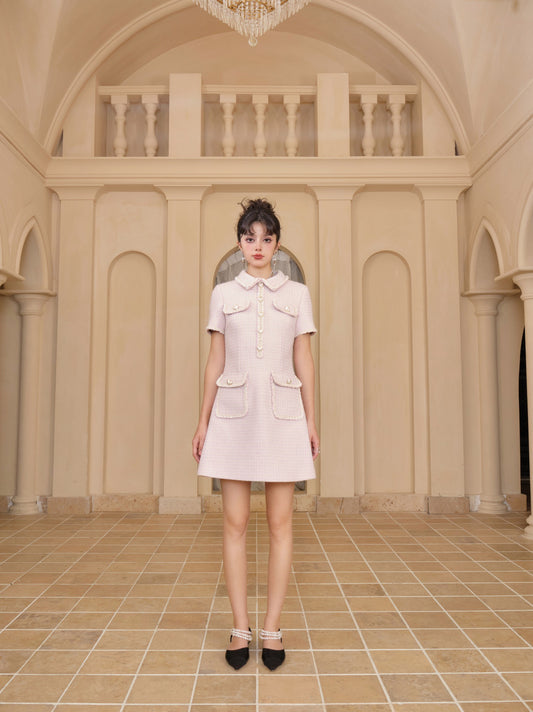 DIANA VEVINA Heart Button Tweed Dress Pink