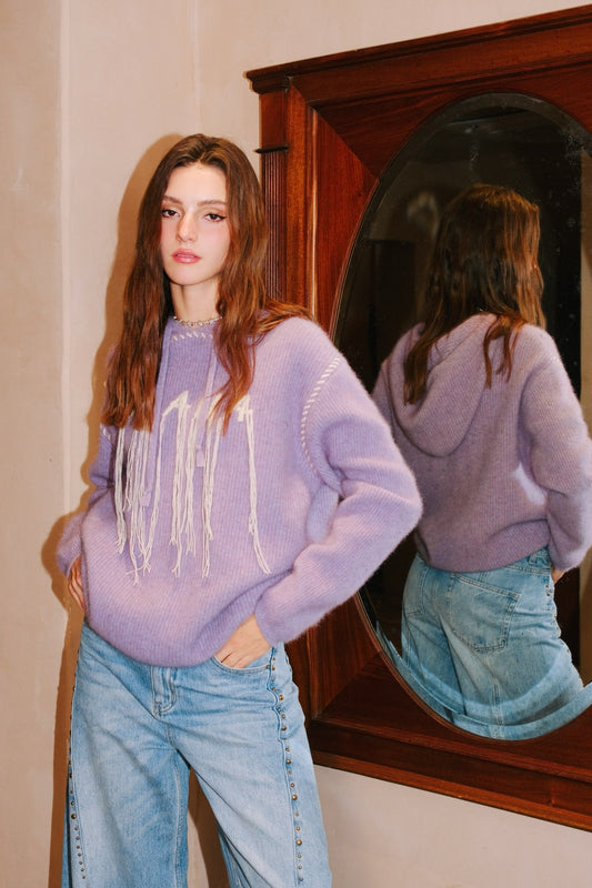 DIANA VEVINA Tassel Letter Cashmere Hoodie Purple