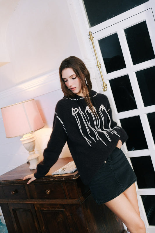 DIANA VEVINA Tassel Letter Cashmere Hoodie Grey