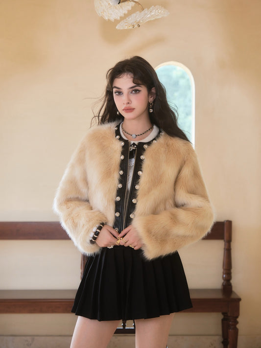 DIANA VEVINA Patchwork PU Fur Jacket Brown