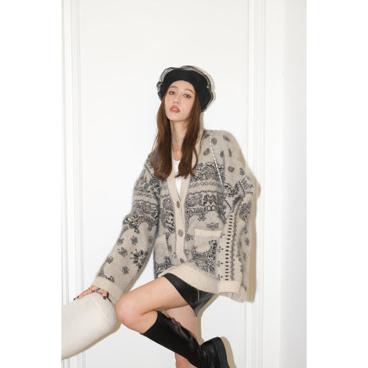 DIANA VEVINA Chain Totem Cardigan Khaki