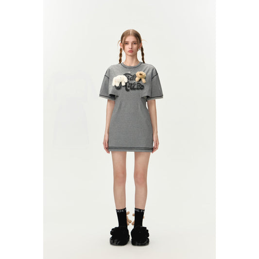 13DE MARZO Doozoo Waist Cut Tee Dress Grey