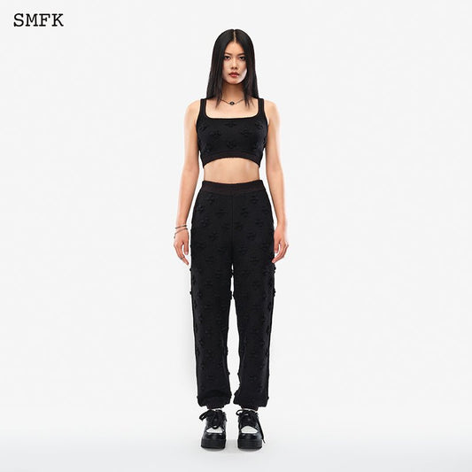 THREE QUARTERS Waist Flap Straight-Leg Pants Black