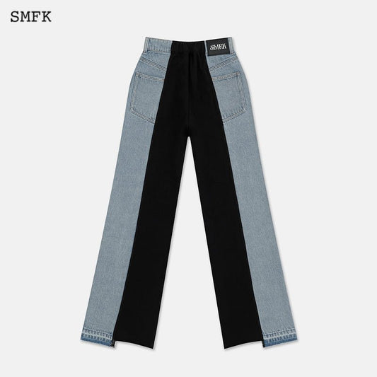 SMFK Skater Deconstructed Wide Leg Jeans Blue and Black