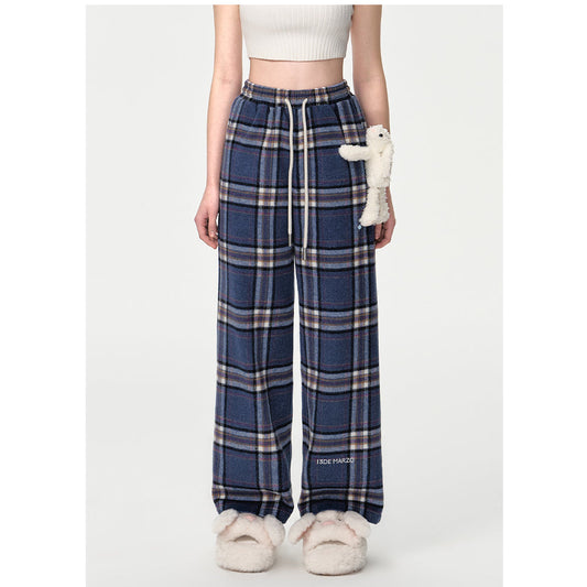 13DE MARZO Doozoo Plaid Straight Pants Navy Blue