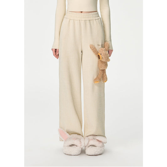 13DE MARZO Bear Corduroy Sweatpants Beige