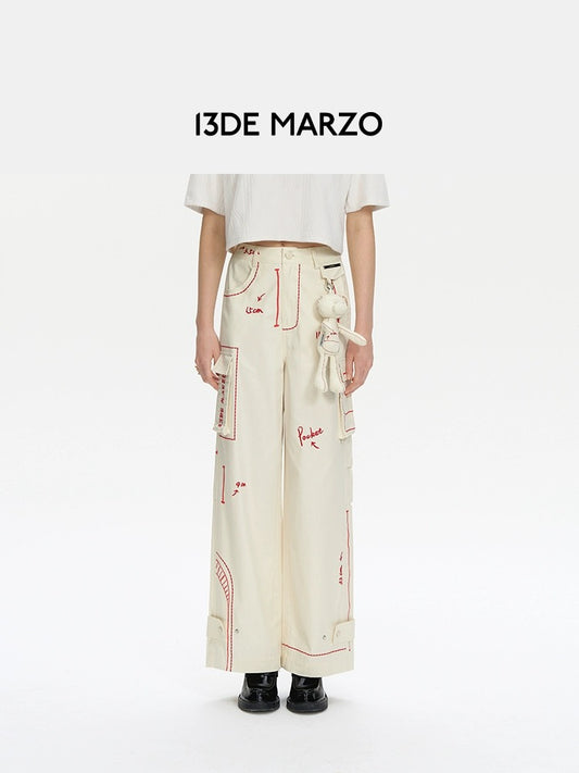 13DE MARZO Sketch Line Trousers White