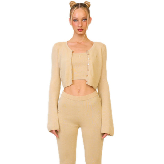SMFK Temple Double Dragon Chinese Knit Skirt in Sand Color