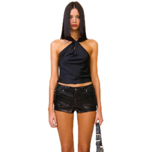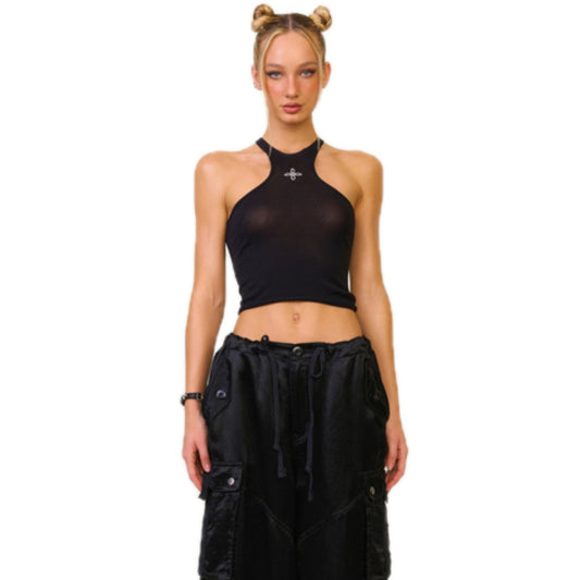 SMFK Temple Traditional Halter-Neck Knitted Vest Top Black
