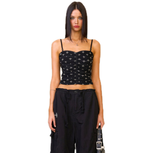 SMFK Temple Traditional Black Knitted Cross Sling Top