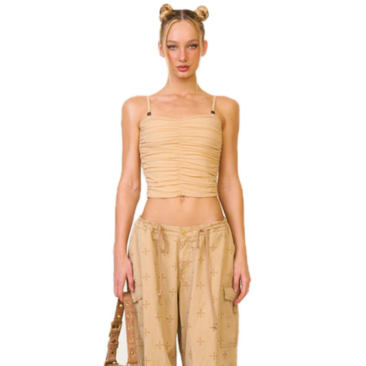 SMFK Temple Traditional Knitted Cross Sling Top Sand