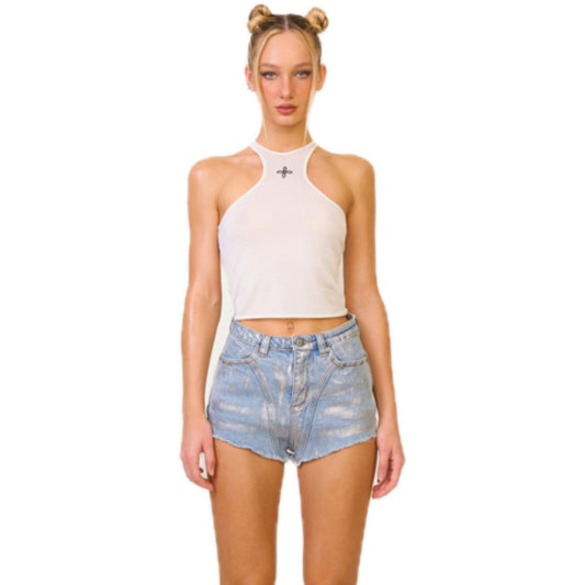 SMFK Temple Traditional Halter-Neck Knitted Vest Top