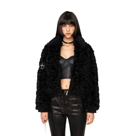 SMFK WildWorld Adventure Short Faux Fur Jacket In Black