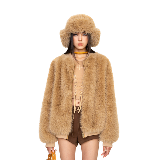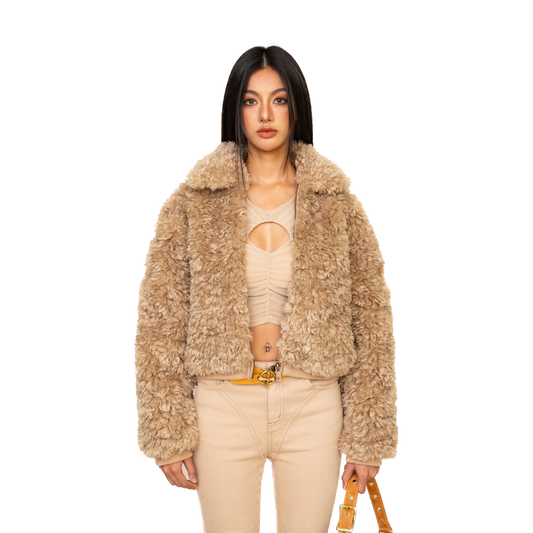 SMFK WildWorld Faux Fur Short Jacket In Wheat