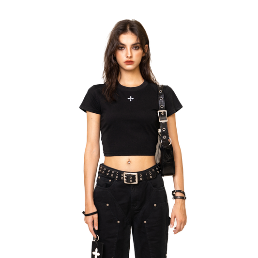 Charlie Luciano Snow White Tape Print Tee Black