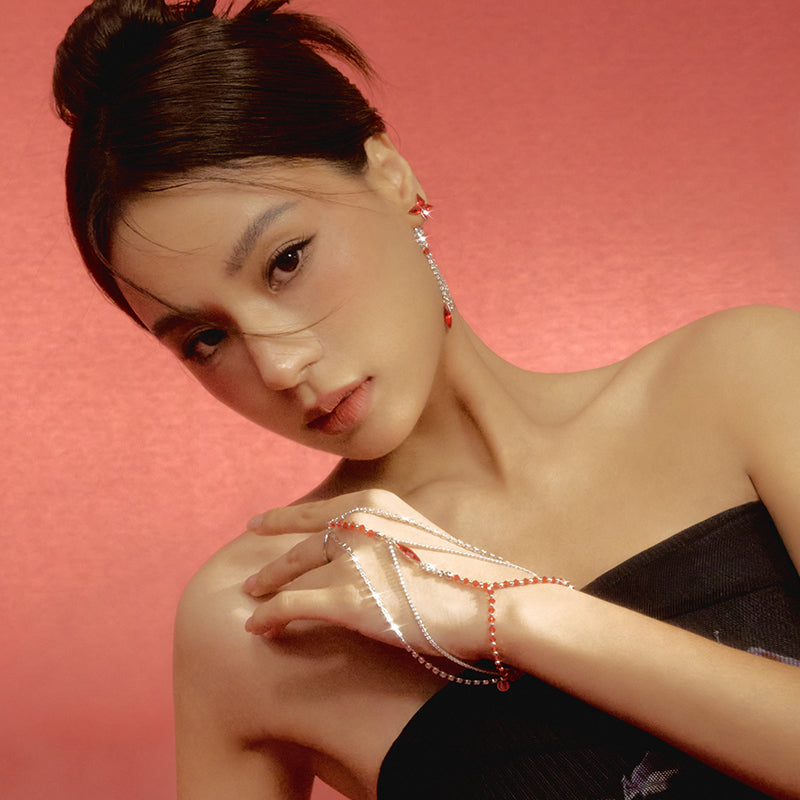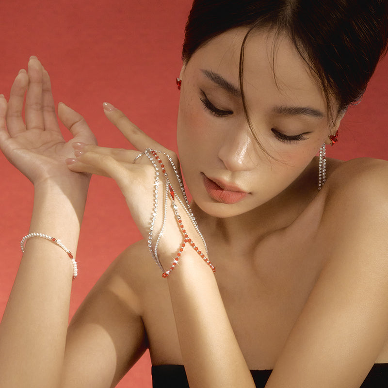 - Materials: Rhodium-plated copper, glass, synthetic cubic zirconia